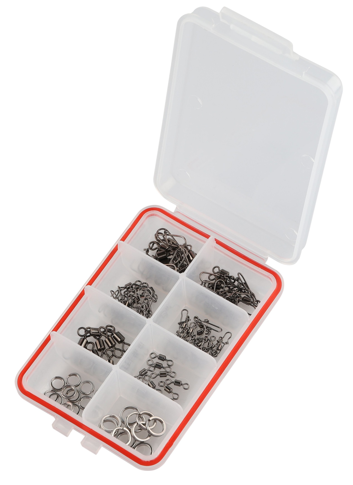 IFISH Tillbehörssortiment. Sortiment med sorterade tillbehör i olika storlek i praktisk förvaringsask. Innehåller 80 styck lekanden, lekande med hake och fjäderringar.