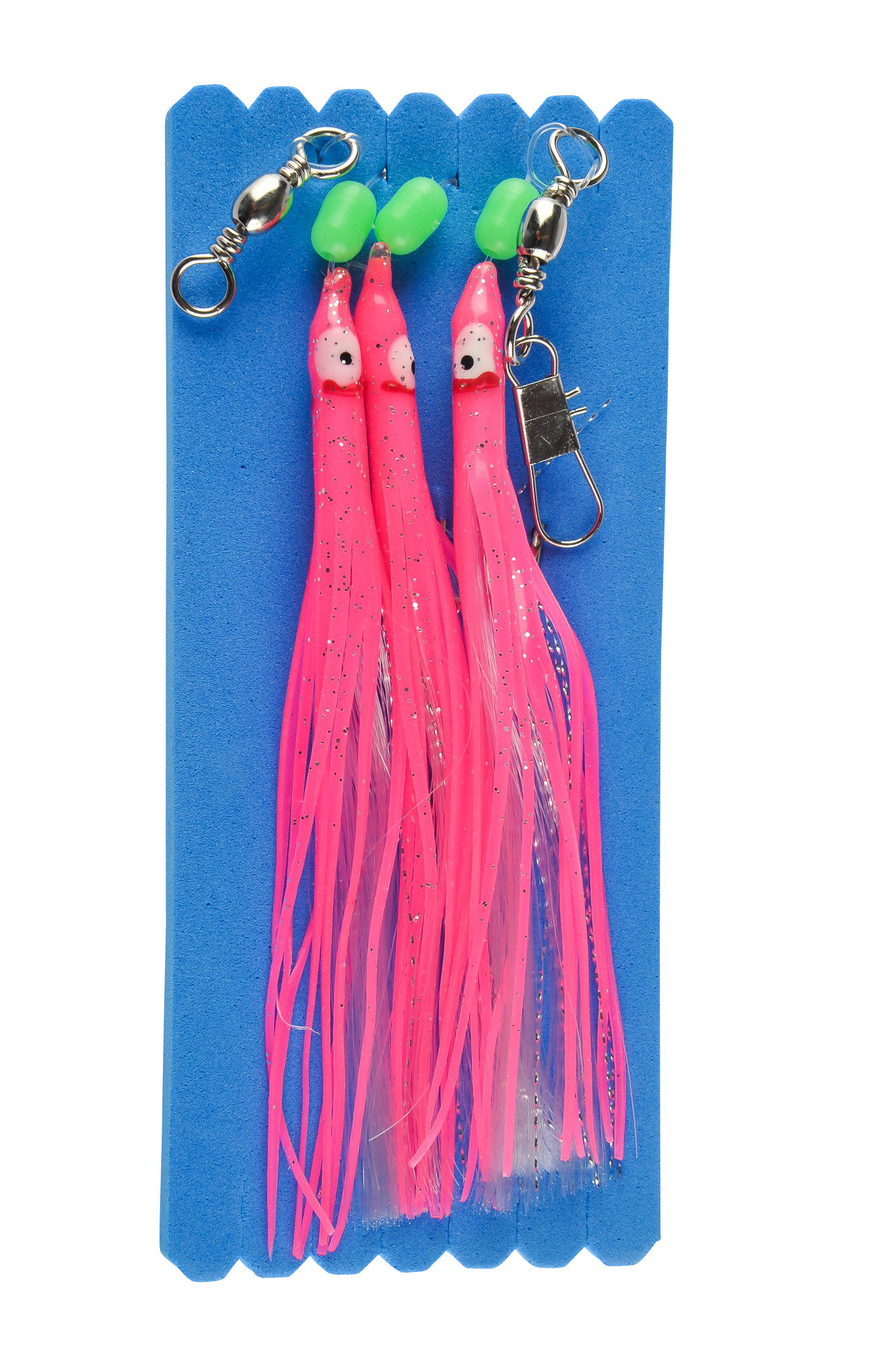 IFISH Tingeling 5/0, Pinky. Häckla med tre upphängare som levereras på praktisk foam där häcklan kan förvaras för att undvika trassel i redskapslådan. Krokstorlek 5/0. Färg Rosa. Lämplig för fiske efter torsk eller sej mm.