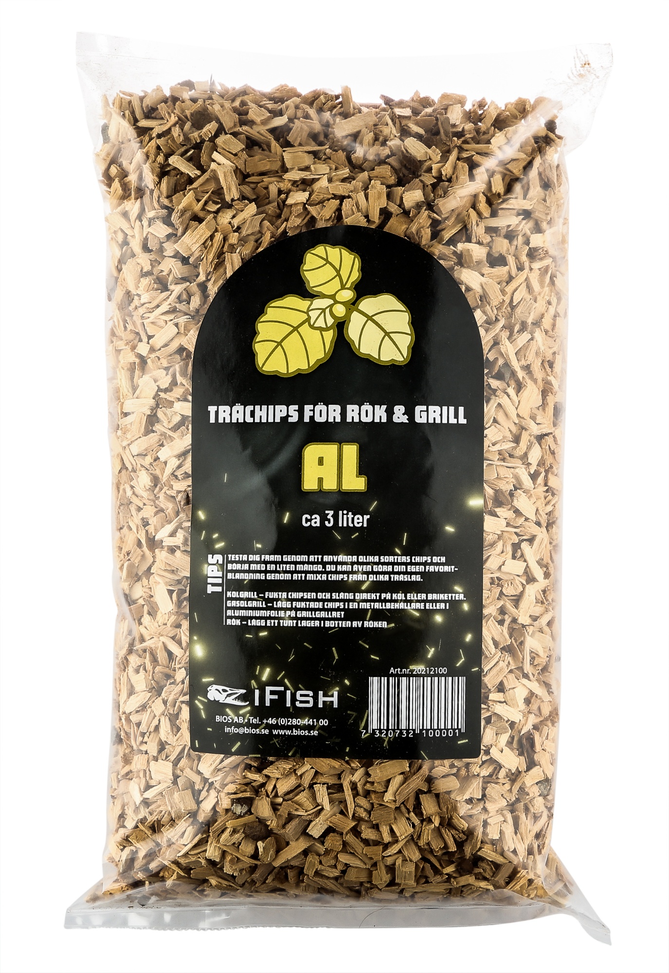 IFISH Trächips för Rök & Grill. Trächips av svensk tillverkning för användning i alla olika typer av rökar och grillar. Ett tips är att testa sig fram genom att använda olika sorters chips och börja med en liten mängd. Man kan även göra sin egen favoritblandning genom att mixa chips från olika träslag. Kolgrillning: Fukta chipsen och släng direkt på kol eller briketter. Gasolgrill: Lägg fuktade chips i en metallbehållare eller i aluminiumfolie på grillgallret. Rökning: Lägg ett tunt lager i botten av röklådan. Innehåll Ca: 3 liter trächips av Alträ.