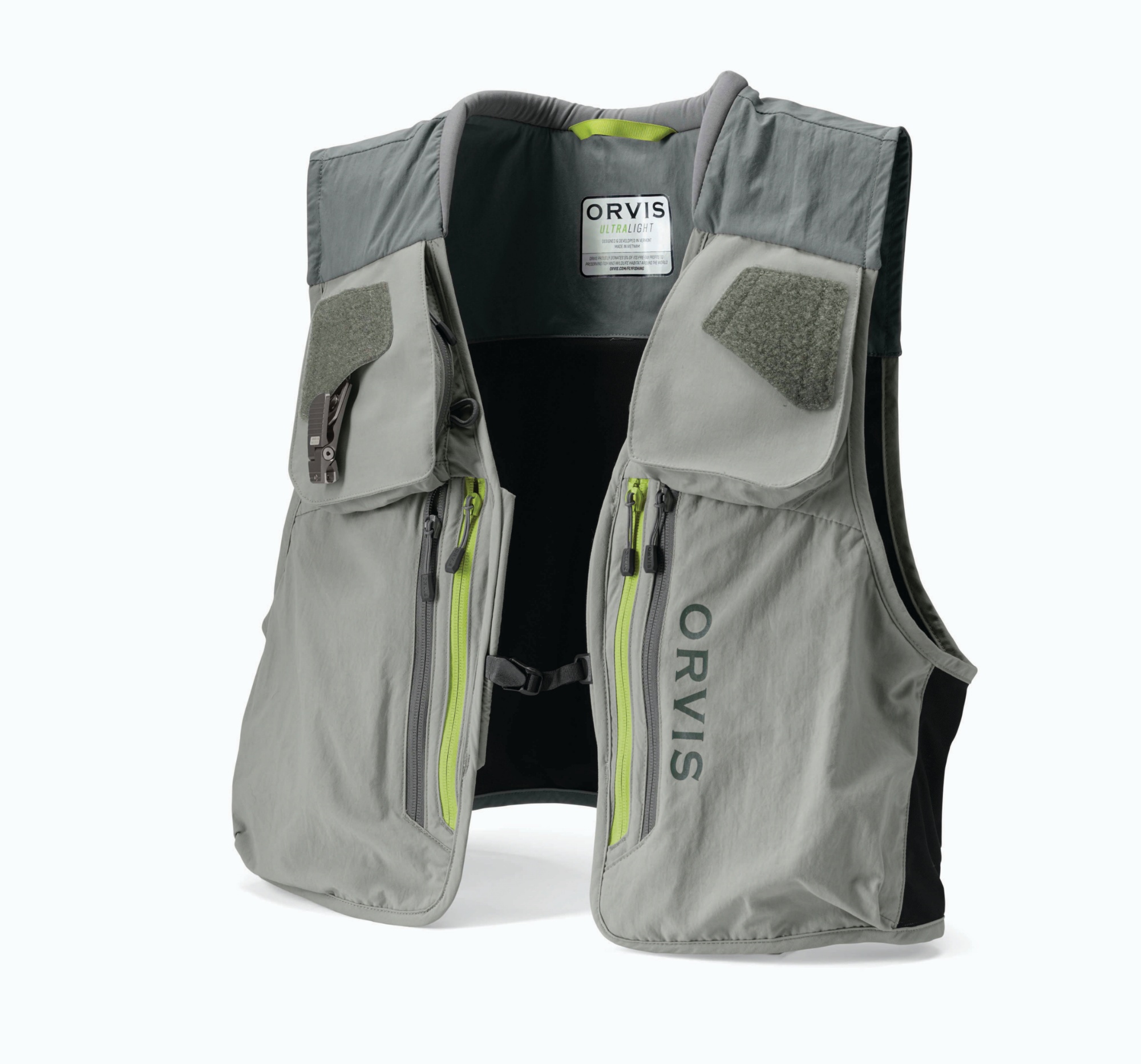 Orvis Ultralight Vest S. Ultralight Fishing Vest erbjuder ny modern, elegant och funktionell design som ligger helt i linje med Orvis senaste koncept; Ultralight Wading System. Den tighta designen ligger närmare kroppen och minimerar den bulliga känslan av konventionella västar. Lätt material, behandlat med DWR (Durable Water Repellent), torkar snabbare och andas bättre. Strategiskt integrerat nät ger ventilation och komfort. Elva fickor, 6 utvändiga, 4 invändigt och 1 baktill. Fyra stora vertikala bröstfickor för flugaskar, varav två har inbyggda fickor i stretchmaterial. Två vertikala bröstfickor högre upp för tafsmaterial och andra tillbehör. Två invändiga vertikala bröstfickor för värdesaker där den högra fickan har en nyckelhållare. Invändiga fickor med stretchmaterial som formas efter innehållet och utjämnar belastningen för maximal komfort. Justerbart spänne gör att du kan justera låsningen vertikalt till den för dig mest bekväma positionen. Två multifunktionella (Velcro®) kardborrefästen gömmer fästen för Pin-On-Reel. Konstruktionen gör att t.ex. linklippare och peang kan förvaras under kardborren och finns tillhands vid behov. Två elastiska band på utsidan av bröstfickorna för tillbehör och tippet bar. Mjuk fodrad skumkrage i poly/spandex för maximal komfort runt halsen. Stor ryggficka med blixtlås för extrautrustning. Triangelformad håvhållare. Färg: Stormgrå. Yttertyg: 100% nylon med DWR-finish. Krage: 92% polyester 8% spandex. Foder: poly/spandex stretch. Tvättbar. Storlek S (34-36).