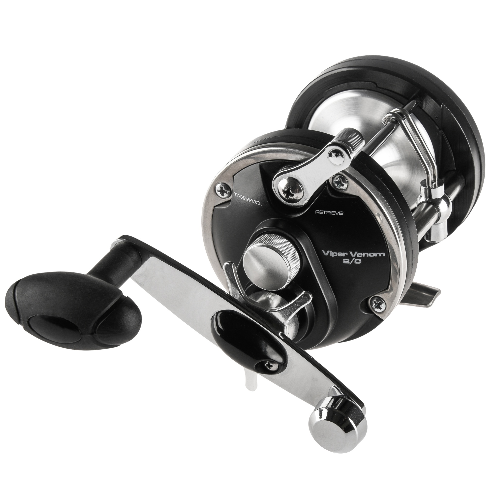 IFISH Viper Venom 2/0. Högervevad havsfiskerulle med maskinskuren aluminiumram och sidostycken i grafit, kraftiga mässingsdrev, aluminiumspole, revspridare, kraftig broms mm. Linkapacitet 275m 0,45mm. Utväxling 4.2:1. Vikt 585g