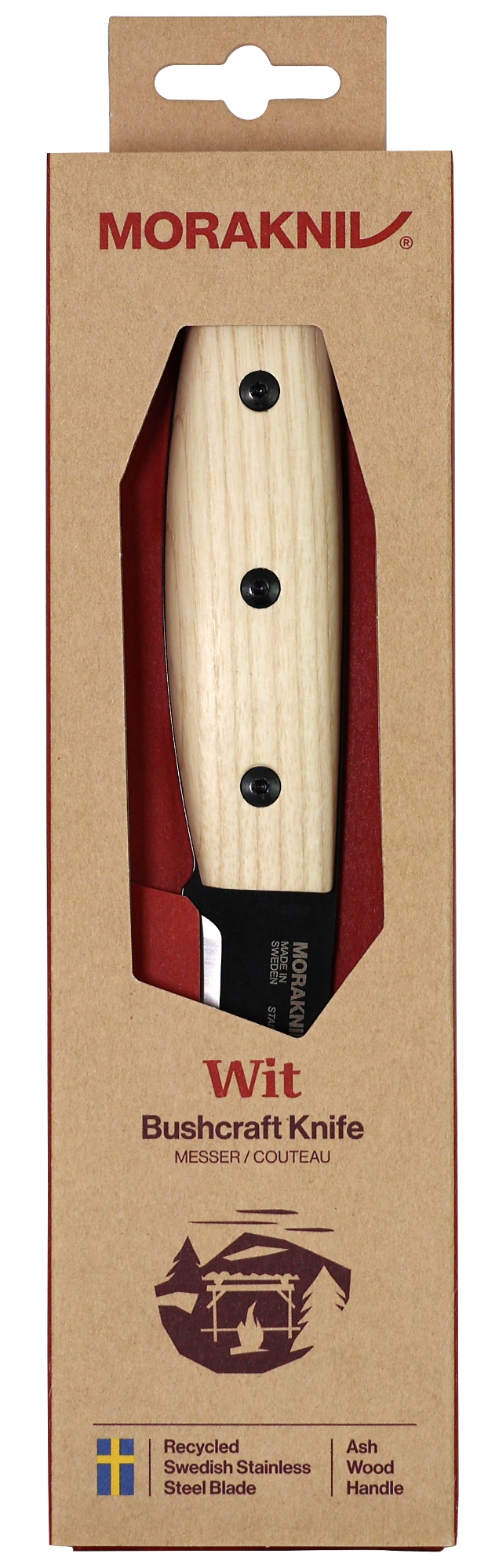 Morakniv Wit Black Blade. En handgjord, pålitlig bushcraftkniv med fulltånge som kan användas i många olika utmanande situationer på ditt nästa långvariga äventyr. Med ett ergonomiskt specialformat skaft av ljust askträ från europeiska FSC® certifierade skogar möjliggörs en mängd olika grepp som kan komma väl till hands. Det svarta knivbladet av återvunnet svenskt rostfritt stål tillsammans med dess fulla kurvatur och spetsslipning gör att du kan få ut det mesta av din upplevelse. Bladryggen är dessutom kompatibel med tändstål. Det unika skaftet av noggrant utvalt askträ har en funktionell grepphäl och ett 2,5 mm tjockt svart knivblad av återvunnet svenskt rostfritt stål, som tillsammans ger både styrka och stabilitet i varje skär. Tack vare blad- och skaftkonstruktionen blir kniven välbalanserad och speciellt utvecklad för precisionsarbete. Den svarta PC-beläggningen skapar en balanserad kontrast mellan det ljusa askträet och stålets skinande egg. Knivslidan av vegetabiliskt garvat läder har en bältes-loop och skyddar den vassa eggen från ytor som kan göra kniven slö. Wit är även kompatibel med tillbehöret Morakniv Dangler 10 with Button så att du kan ha kniven på bältet. Bladtjocklek: 2,5mm Bladlängd: 103mm Totallängd: 238mm Vikt: 193g.